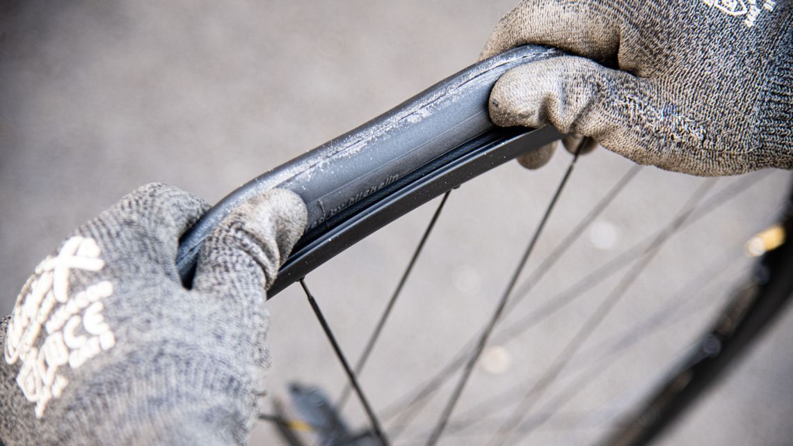 リムの底部が清潔であることを確認してください。まず、バルブ穴の横にリムテープを配置します。バルブを使用して、リムテープを所定の位置に固定することができます。タイヤレバーを使用すると便利です。新しいリムテープは、チューブをより効果的に保護します。粘着性のリムテープがリムから剥がれている場合は、交換する必要があります。