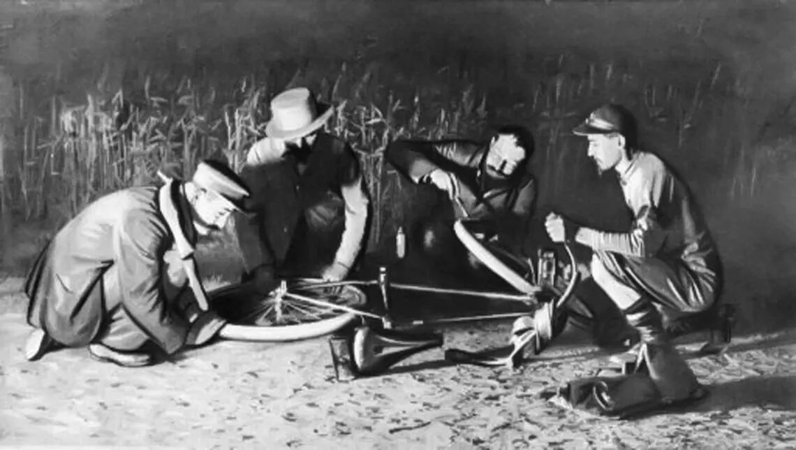 ソリッドタイヤに比べて格段に乗り心地がいいものの、当時の空気入り自転車用タイヤは、木製のリムにしっかり糊付けされていて取り外しができなかったため、修理に3時間、リムへ再接着して乾かすのに一晩かかってしまいました。。
