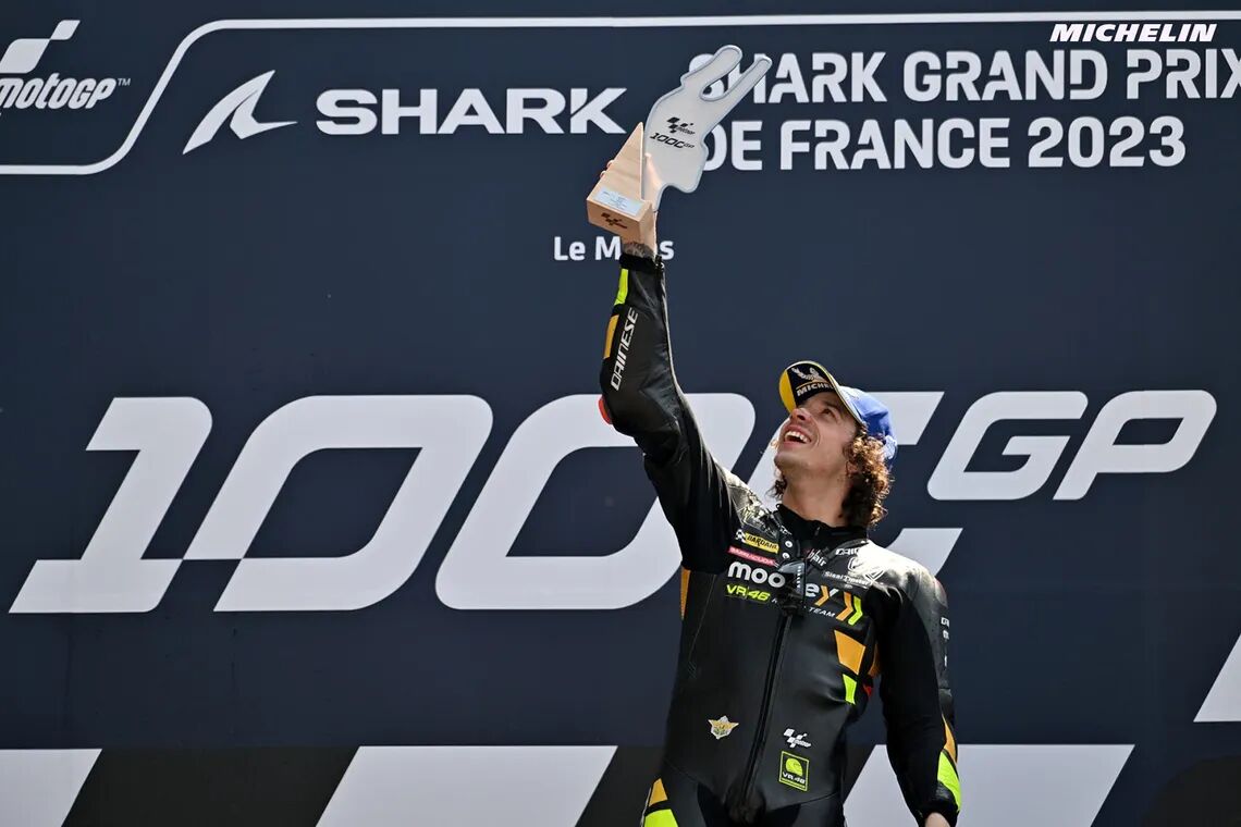 2023年シーズンのMotoGP第5戦フランスGPが開催され、Mooney VR46 Racing Teamのマルコ・ベッツェッキが独走優勝を決めて今季2勝目を飾りました。今大会のMotoGPクラスは、1949年6月のマン島TTレースを第1回大会とするロードレース世界選手権(通称 世界グランプリロードレース)の、通算1000戦目のレースでした。この大きな節目において、ミシュランがMotoGPクラスの出場全車に供給する公式タイヤは、高性能を安定的に発揮し続ける本領を遺憾なく発揮して、ミシュランの母国イベントにおける熱戦を彩りました。